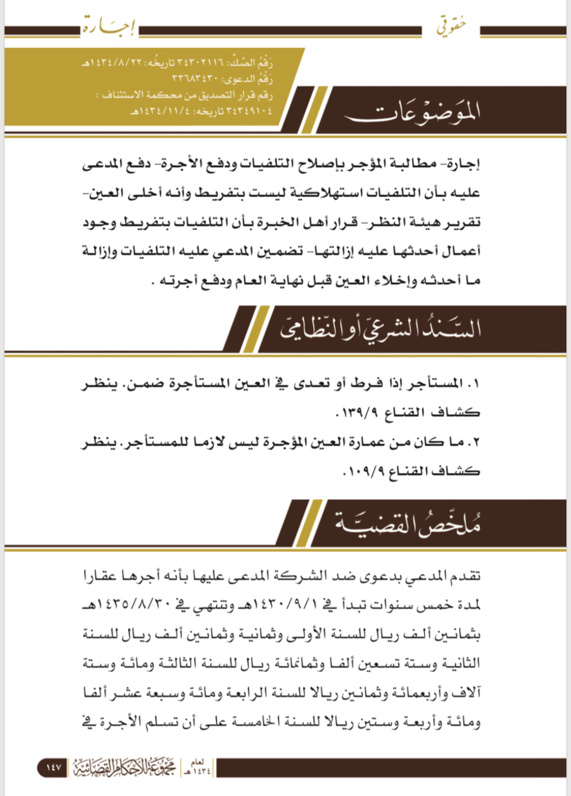 إجارة - المطالبة بإصلاح التلفيات ودفع الأجرة