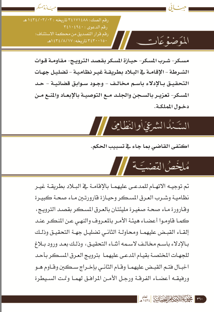 شرب مسكر وحيازته بقصد الترويج