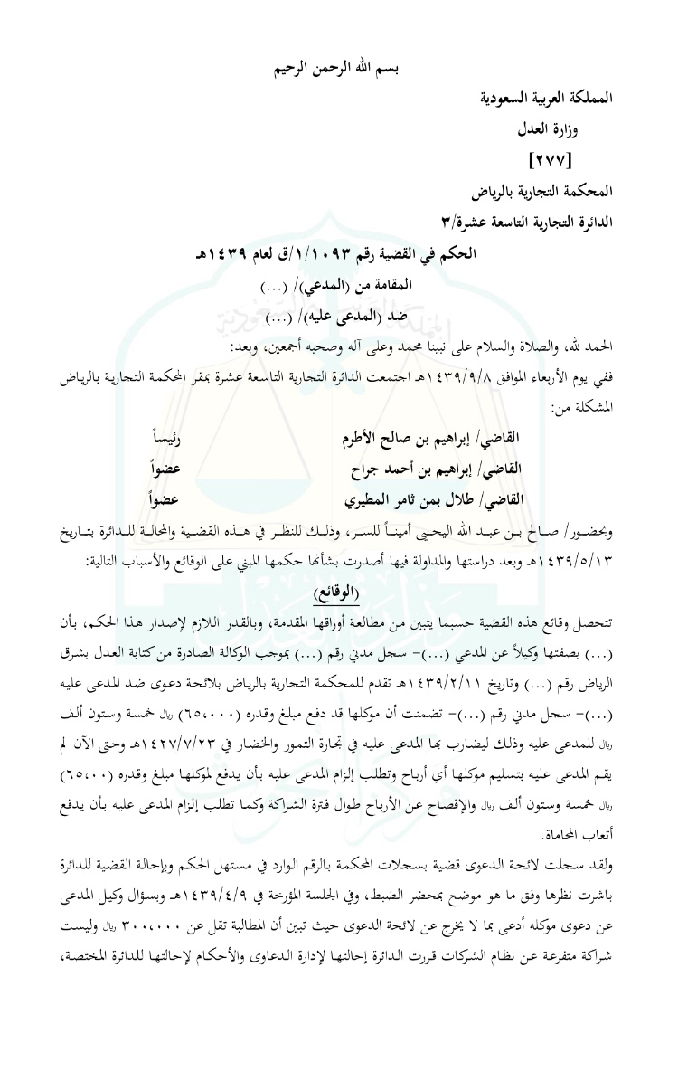 رقم الصك :