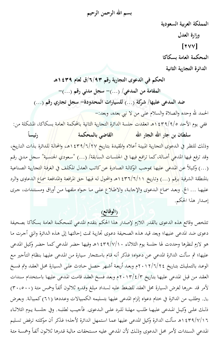 عدم الاختصاص الولائي - عقد ايجار تمويلي