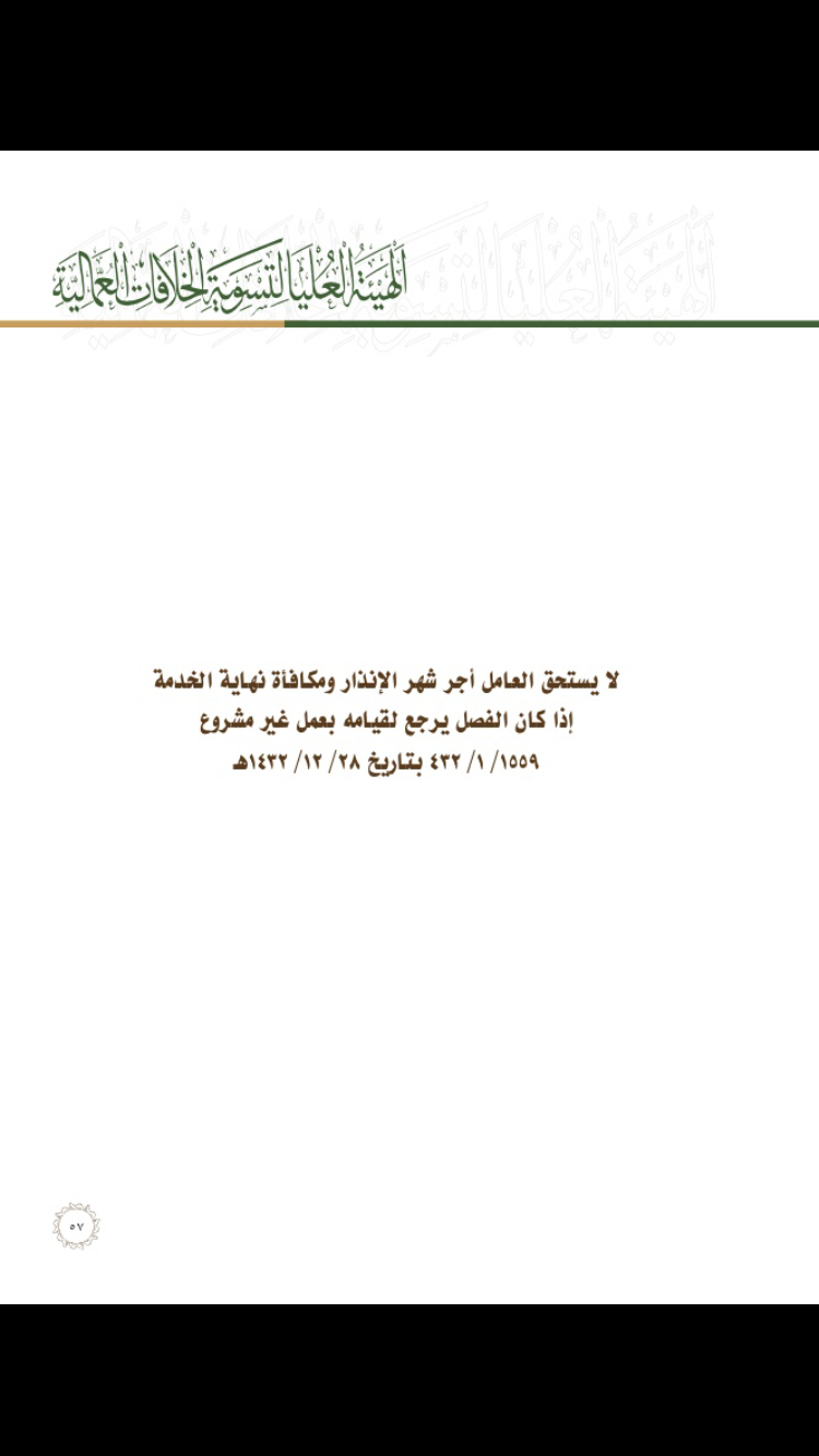 لايستحق العامل أجر شهر الإنذار ومكافاة نهاية الخدمة إذا كان الفصل يرجع لقيامه بعمل غير مشروع