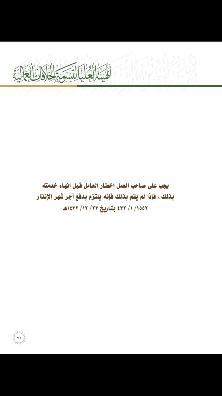 يجب على صاحب العمل إخطار العامل قبل إنهاء خدمته بذلك، فإذا لم يقم بذلك فإنه يلتزم بدفع أجر شهر الإنذار