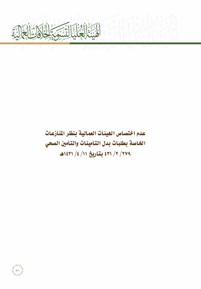 عدم اختصاص الهيئات العمالية بنظر المنازعات الخاصه بطلبات بدل التأمينات والتأمين الصحي