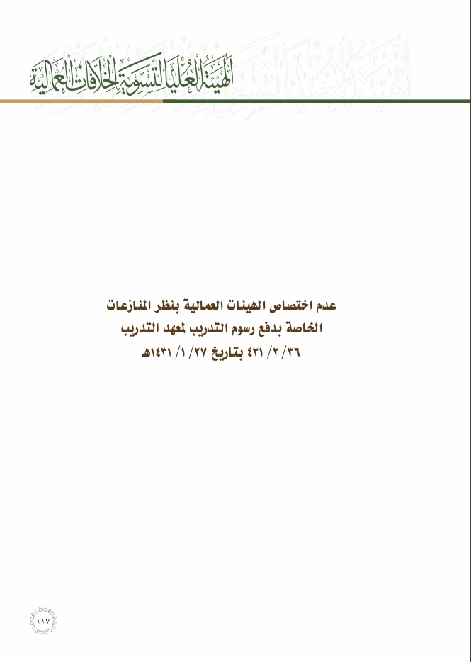 عدم اختصاص الهيئات العمالية بنظر المنازعات الخاصة بدفع رسوم التدريب لمعهد التدريب