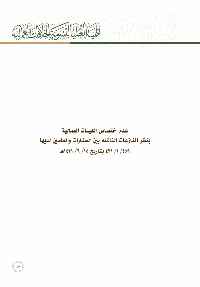 عدم اختصاص الهيئات العمالية بنظر المنازعات الناشئة بين السفارات والعالمين لديها