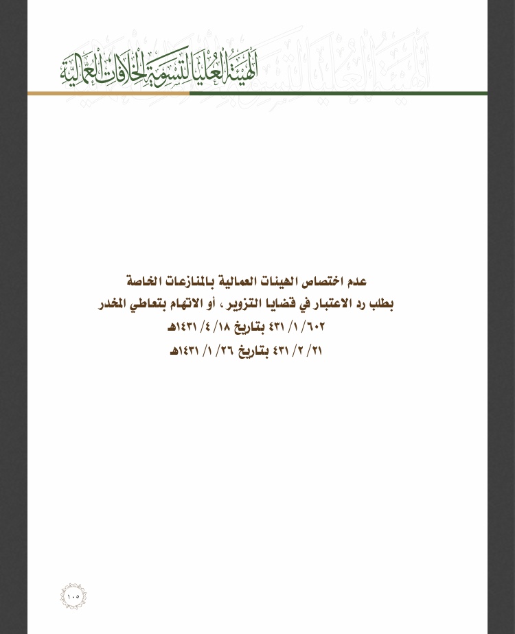 عدم اختصاص الهيئات العمالية بالمنازعات الخاصة بطلب رد الاعتبار في قضايا التزوير ، أو الاتهام بتعاطي المخدر