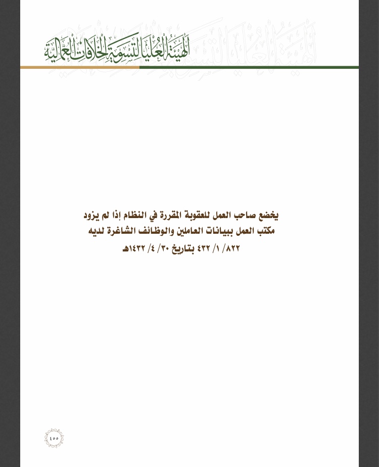 يخضع صاحب العمل للعقوبة المقررة في النظام إذا لم يزود مكتب العمل ببيانات العاملين والوظائف الشاغرة لديه