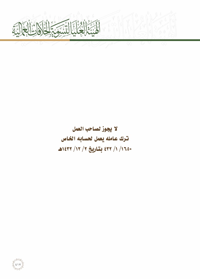 لايجوز لصاحب العمل ترك عامله يعمل لدى الغير