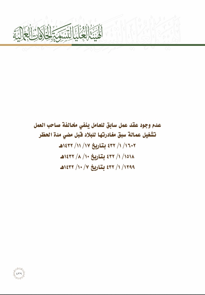 عدم وجود عقد عمل سابق للعامل ينفي مخالفة صاحب العمل تشغيل عمالة سبق مغادرتها للبلاد قبل مضي مدة الحظر