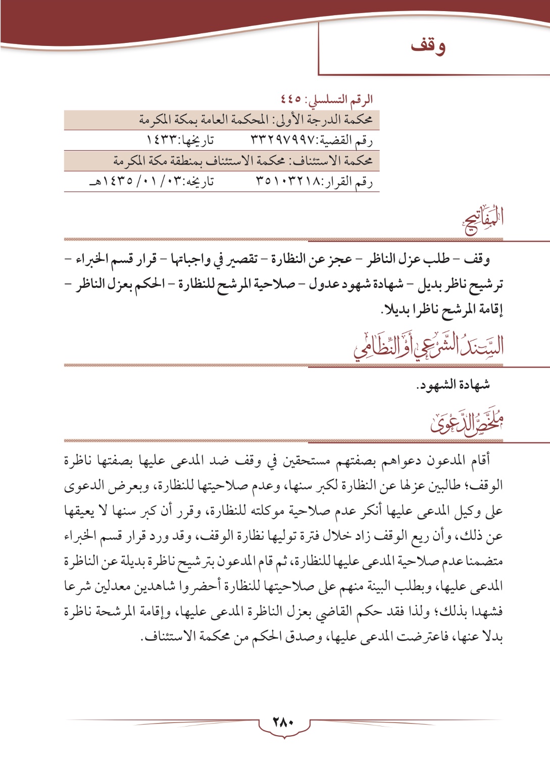 وقف (عزل ناظر للتقصير في النظار)