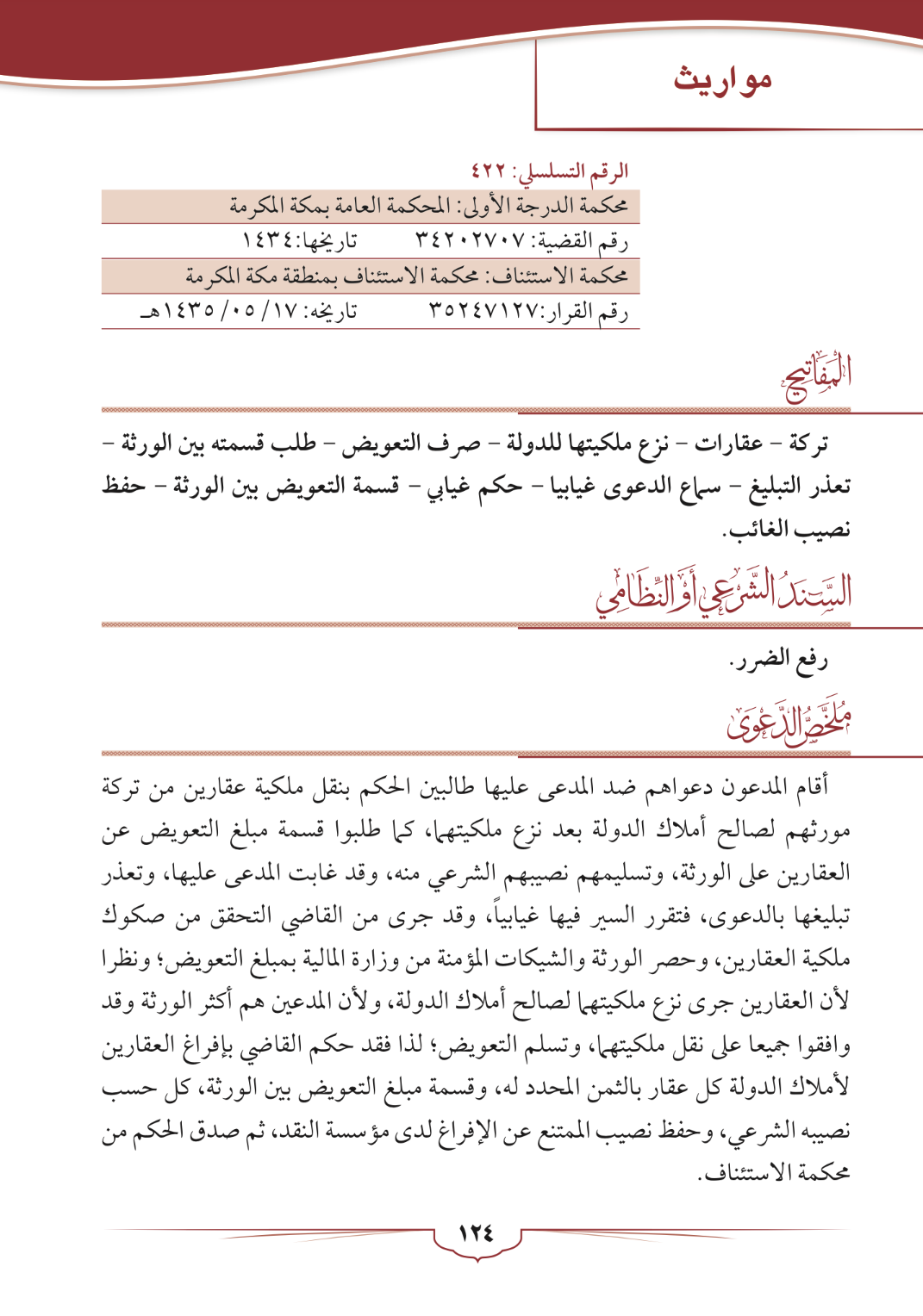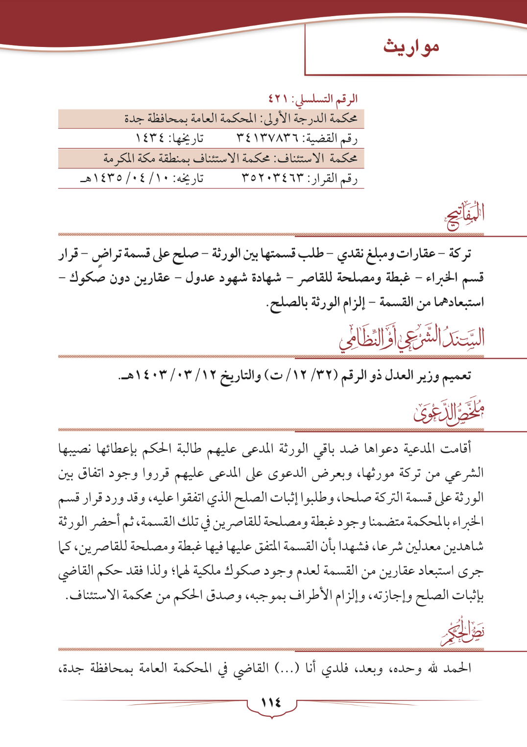 مواريث (قسمة عقارات فيها طلب حجة استحكام)