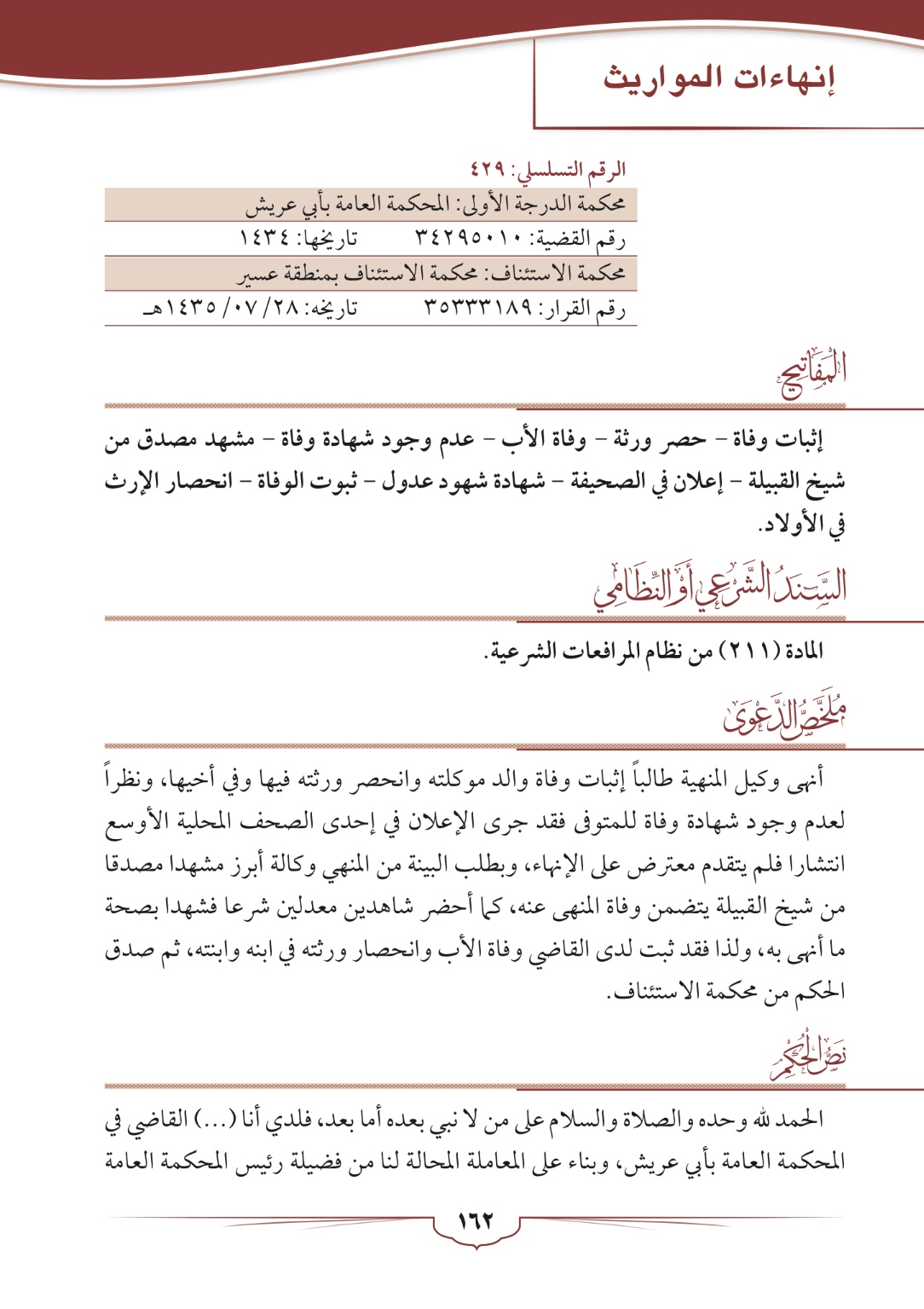 انهاءات المواريث (اثبات وفاة)