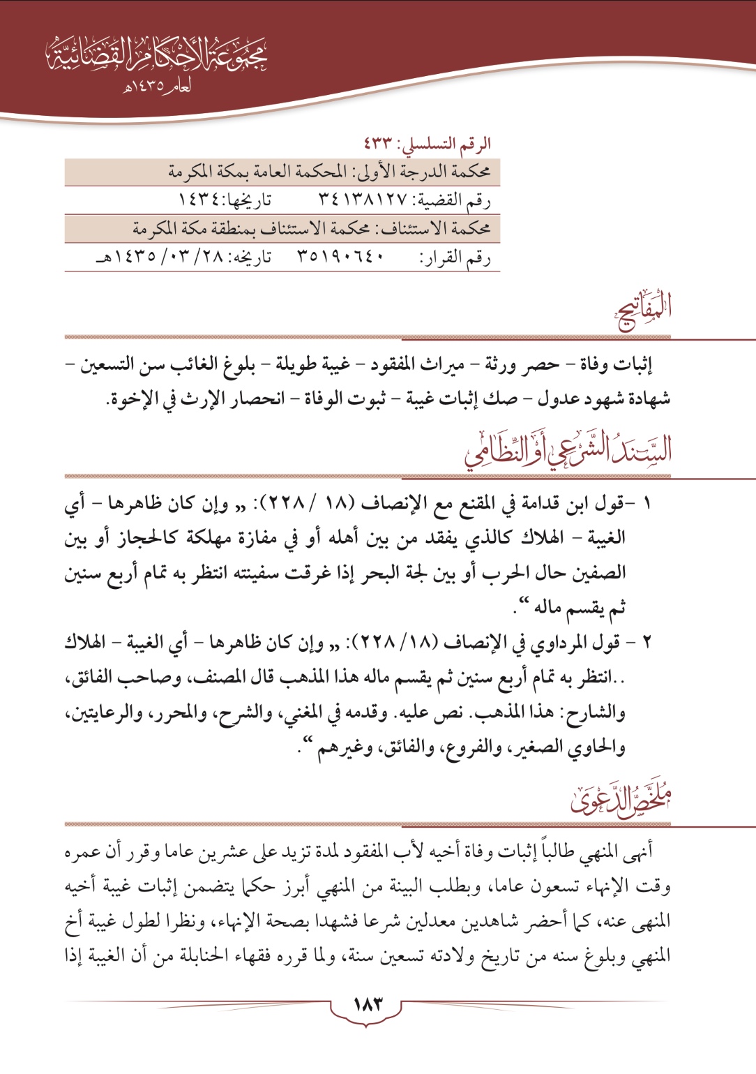 انهاءات المواريث (اثبات وفاة مفقود)