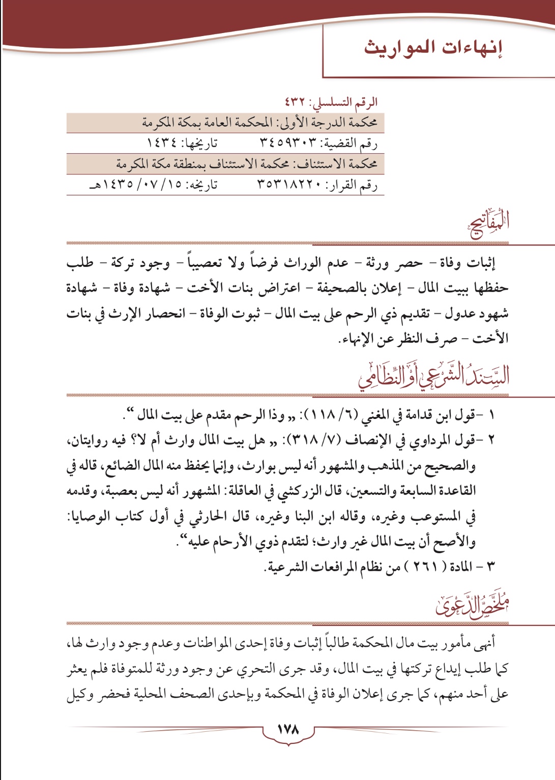 انهاءات المواريث (اثبات وفاة دون وجود وارث فرضاً و لا تعصباً)