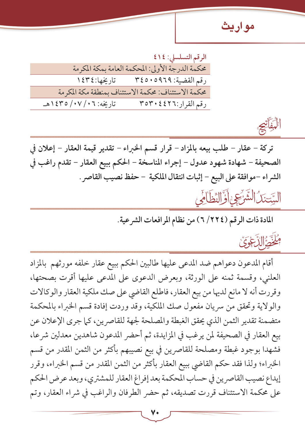 مواريث (قسمة عقارات تركة جبراً مع وجود قاصر)